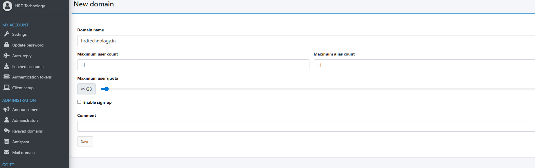 Description (optional): e.g. “HRD Technology primary mail domain”